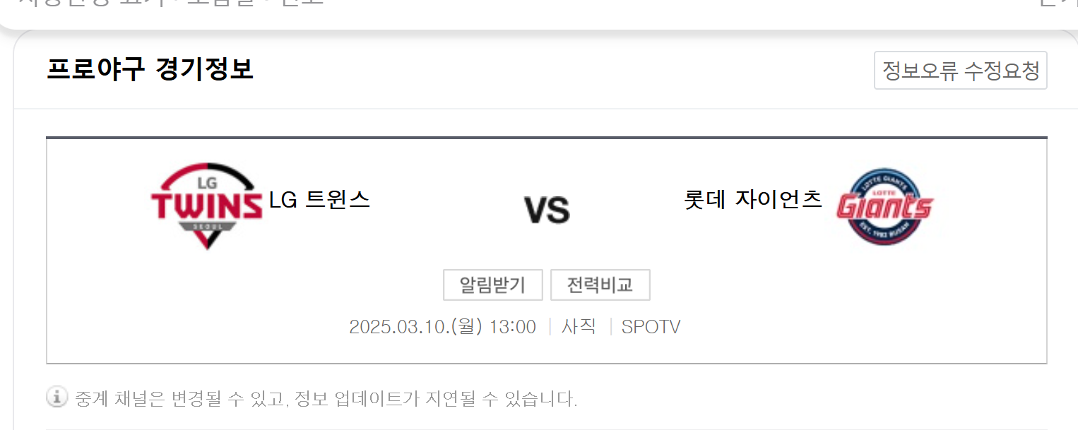 | 2025 LG 트윈스 시범 경기일정 및 예매 가이드 (0) | 2025.03.13 |